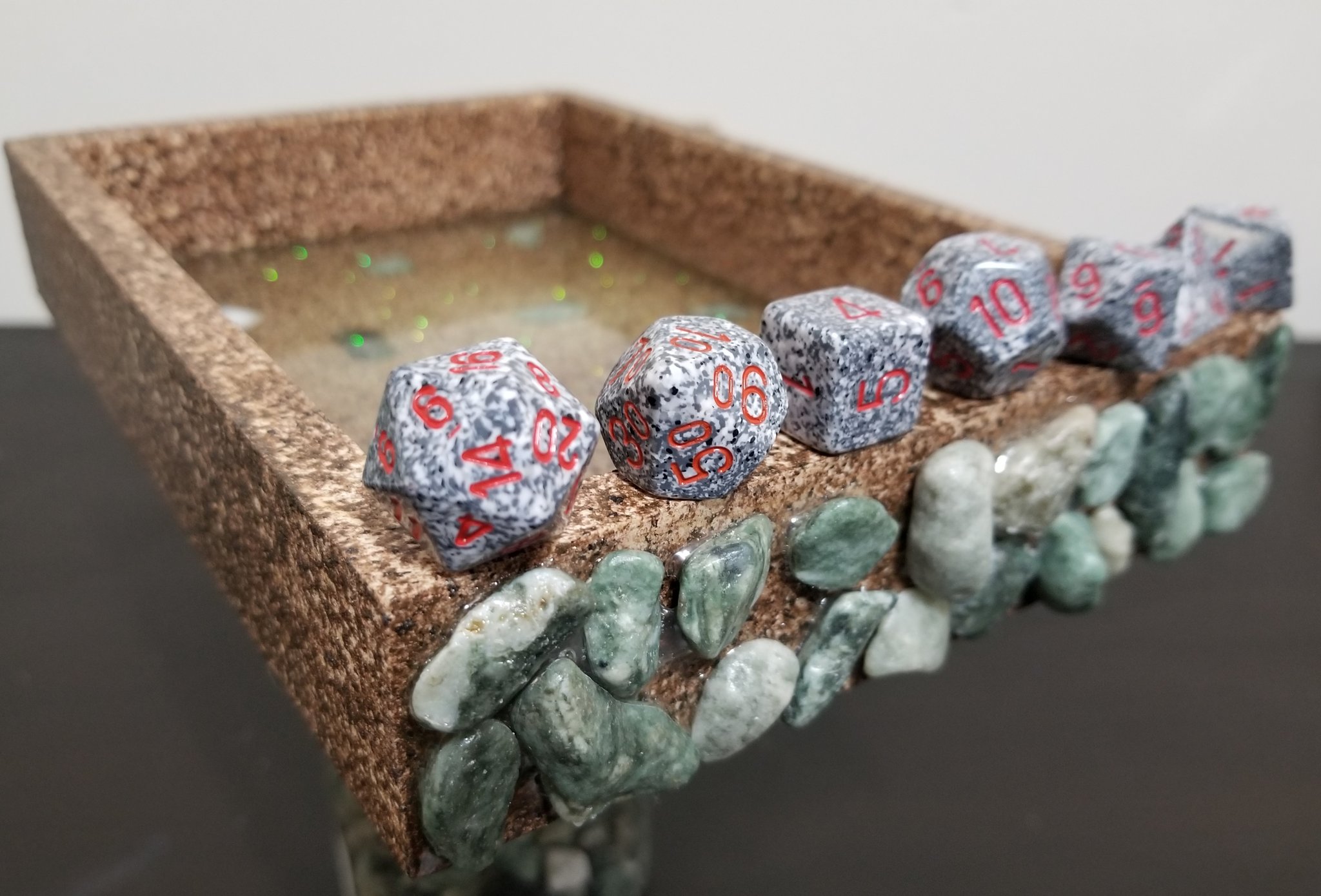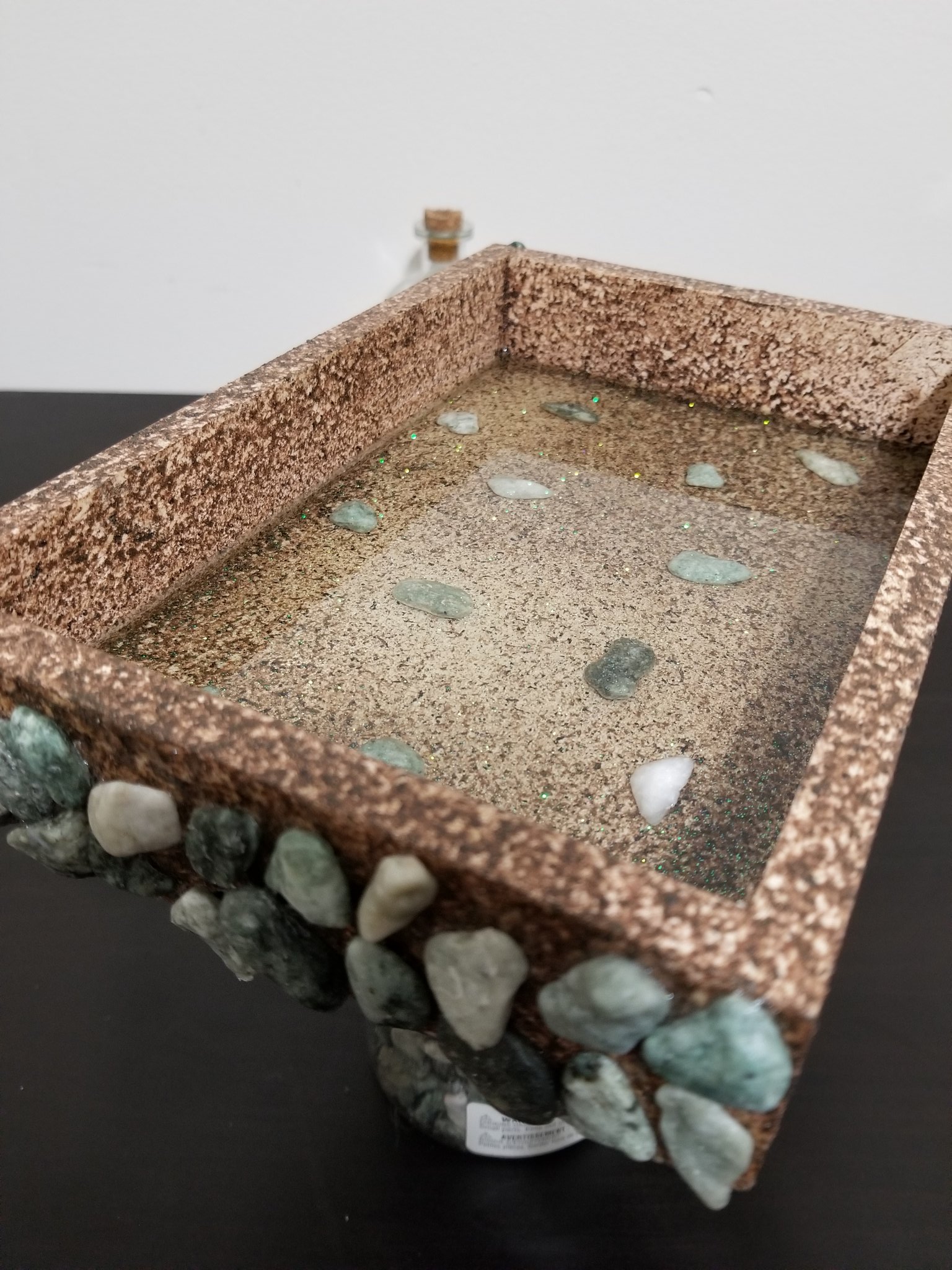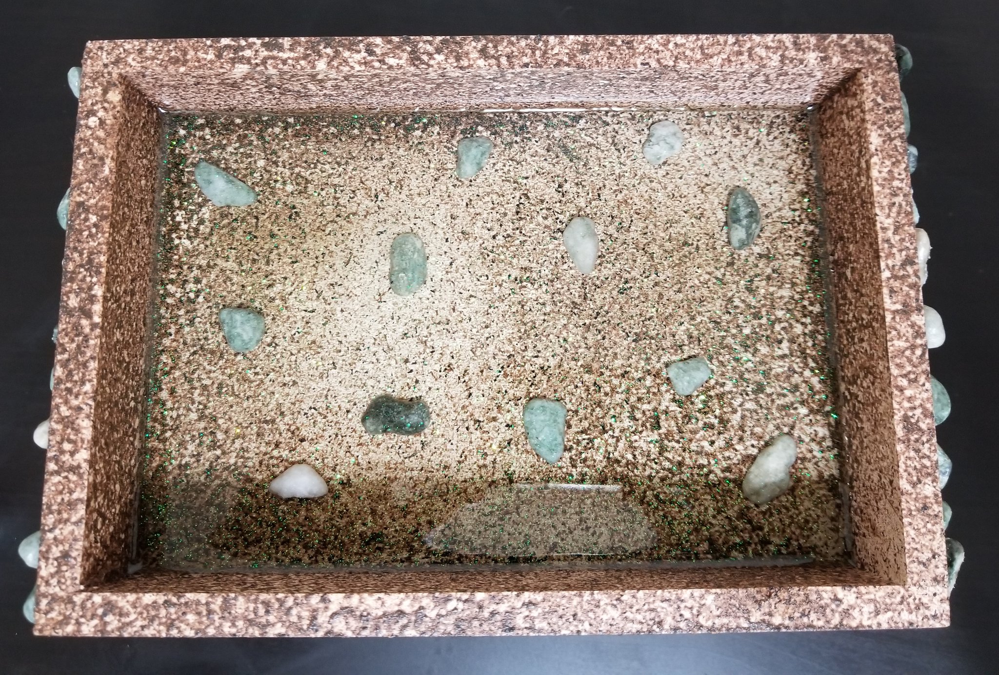 1.Fantastic Stone paint 2.Embedded with quartz, marble and granite on the sides 3.Stones encased in a magical barrier in the middle of the tray